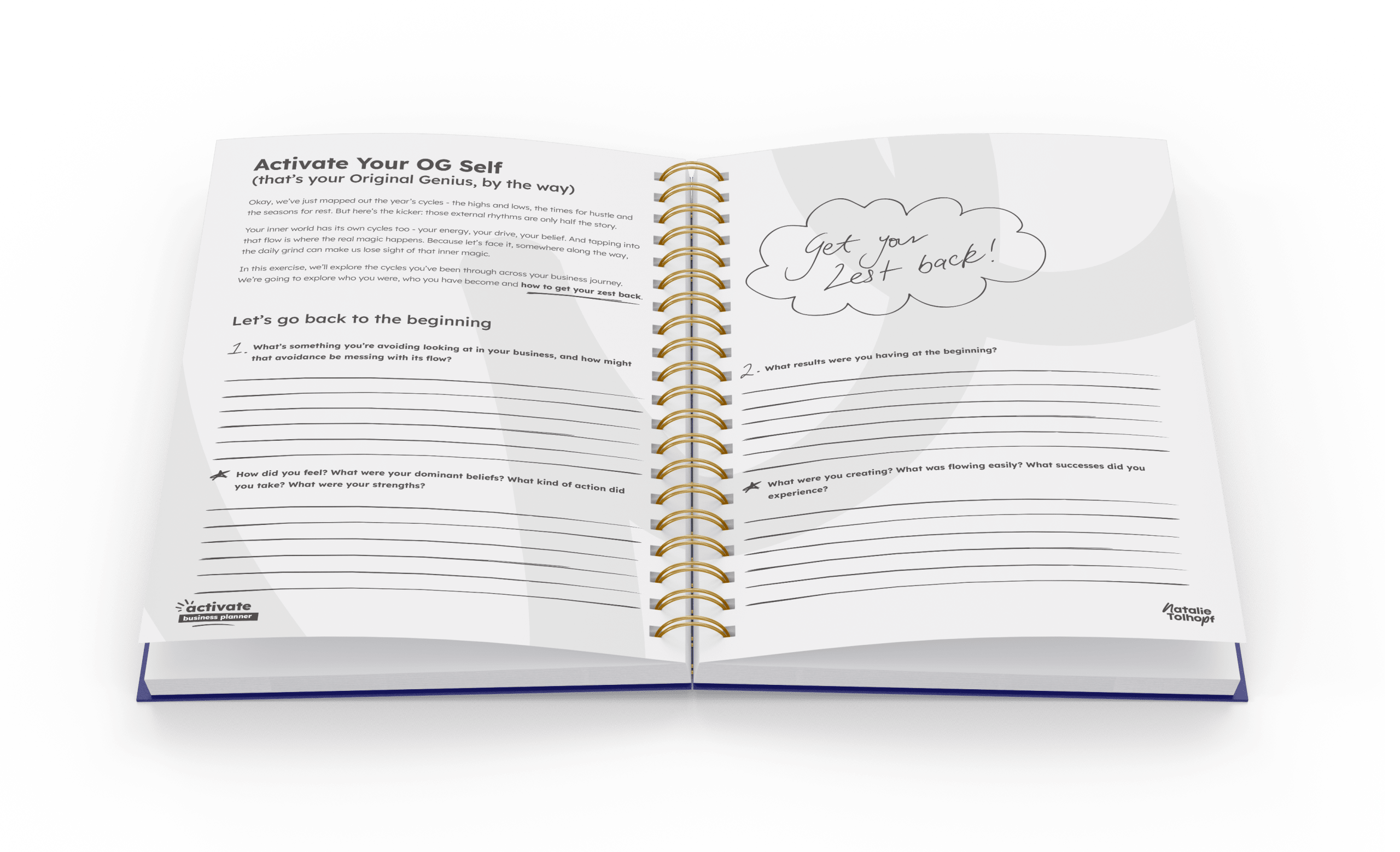 The Activate Planner is a compilation of the most powerful exercises I’ve used with my clients and in my own business, designed to help you: